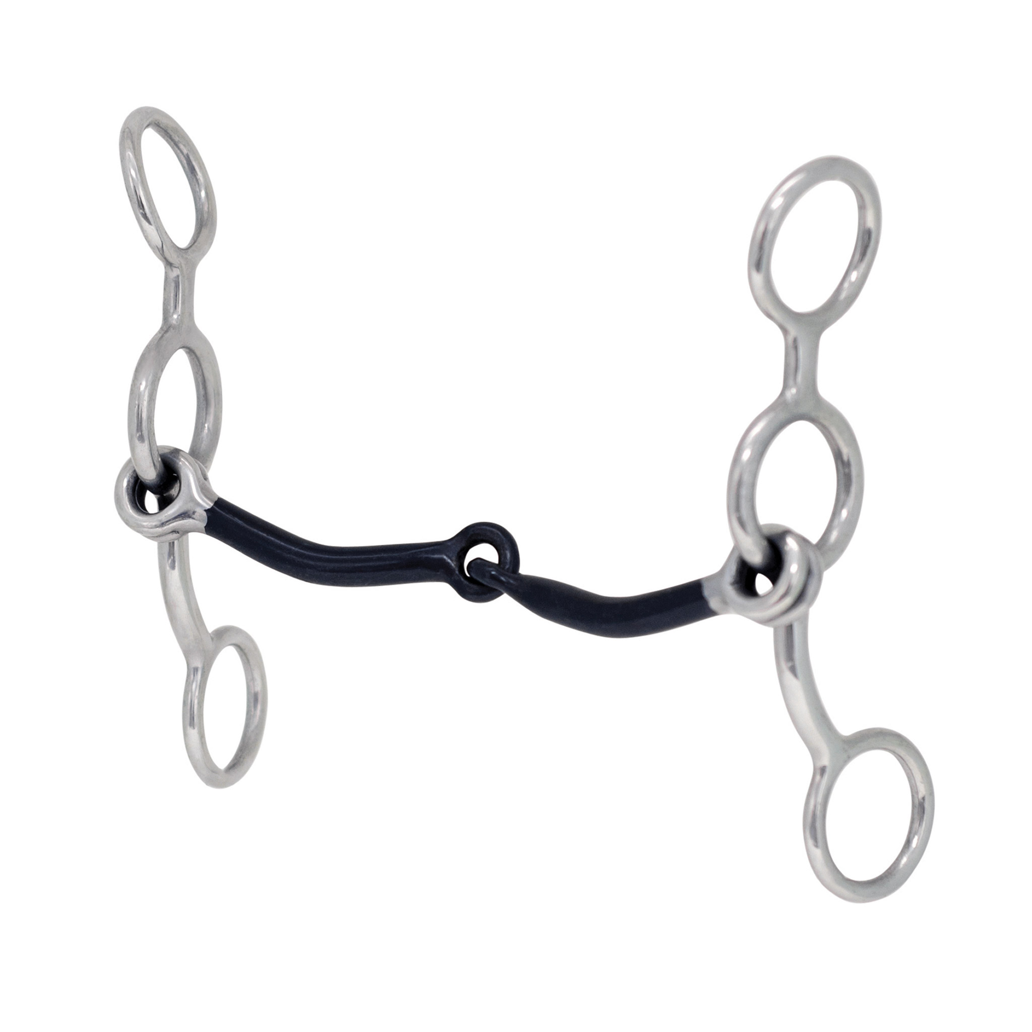 Snaffle, Sweet Iron, Curved mouthpiece. Stainless steel finish.