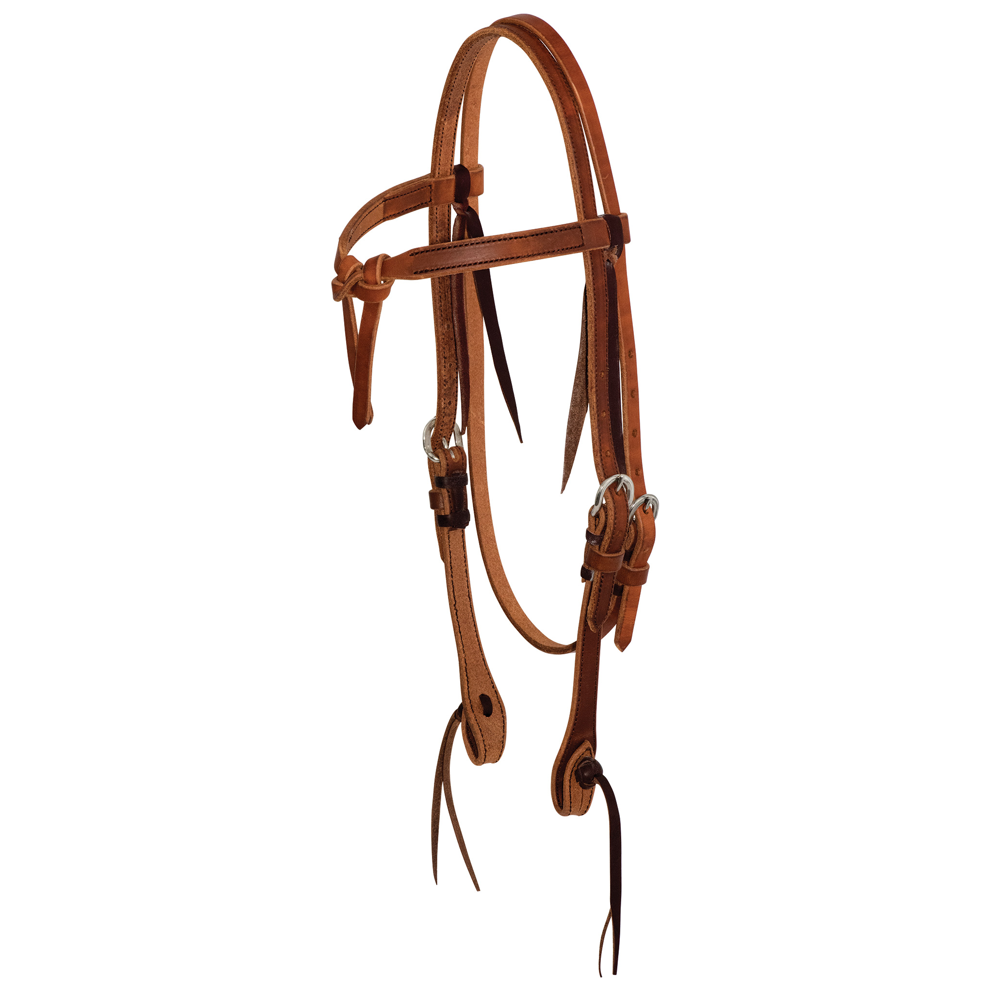 16mm (5/8") Harness leather with stainless steel buckles and cowboy knots at bit ends.