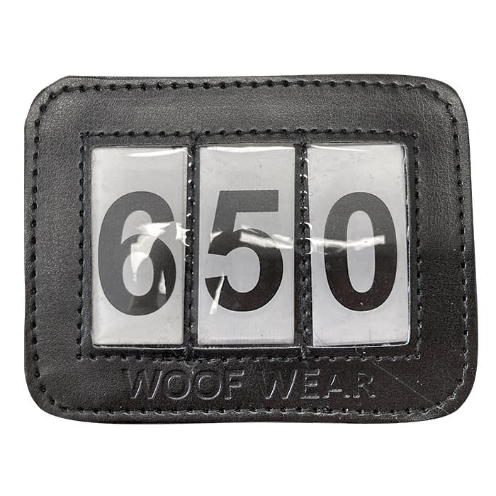Woof Wear's 3-digit Bridle Number Holder is a great way of displaying numbers when competing. It is secured using hook & Loop straps that wrap around the bridle. The numbers are printed on tough waterproof fabric which is cleverly folded so changing numbers is effortless.